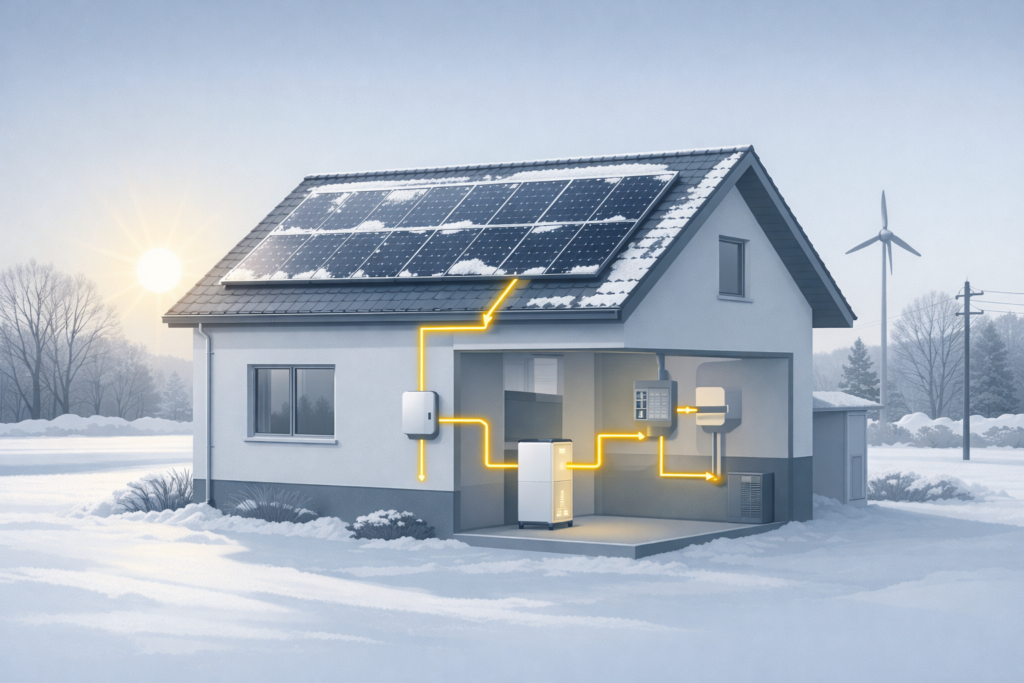 Ein Stromspeicher kann Solarstrom zeitlich verschieben, ersetzt aber keine fehlende Erzeugung. Im Winter ist der Nutzen stark vom Verbrauchsprofil abhängig. Speicher sind eine Ergänzung, keine Garantie.